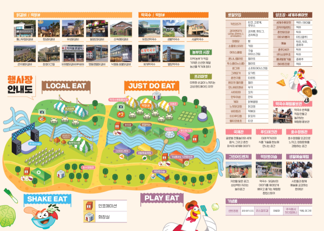 무대공연이 펼쳐지는 SHAKE EAT은 축제의 중심을 이루며 PLAY EAT 구역은 가족 단위 관람객을 위한 놀이 체험과 팝업스토어로 꾸며졌다. 이 밖에도 오뚜기와 손잡고 오뚜기 닭갈비덮밥, 철판닭갈비볶음밥을 선보이고 호수정원관, 빙상 100년 사진전 등 춘천의 문화와 역사를 함께 느낄 수 있는 전시도 마련된다.