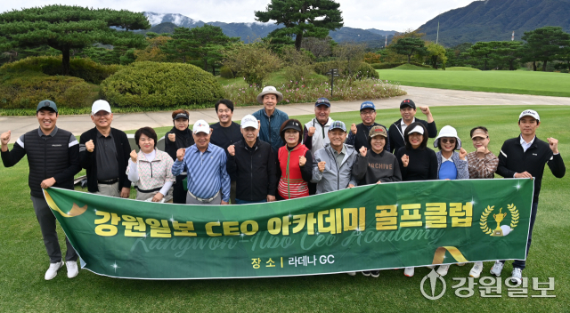 강원일보 CEO아카데미(KCA) 골프클럽 10월 월례회가 14일 춘천 라데나GC에서 김영래 강원일보전무이사, 최대식 KCA총원우회장을 비롯한 회원 20여명이 참가한 가운데 열렸다. 박승선기자