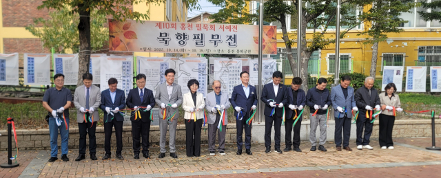홍천필묵회(회장:홍인기)는 14일 꽃뫼공원에서 신영재 홍천군수, 최이경 군의회 부의장, 용준식 군의원, 김준태 NH농협 홍천군지부장, 심영주 홍천농협 조합장, 이규설 홍천군번영회장, 김시재 홍천군종합사회복지관장 등이 참석한 가운데 제10회 홍천필묵회 서예전 ‘묵향필무’ 개막식을 개최했다.