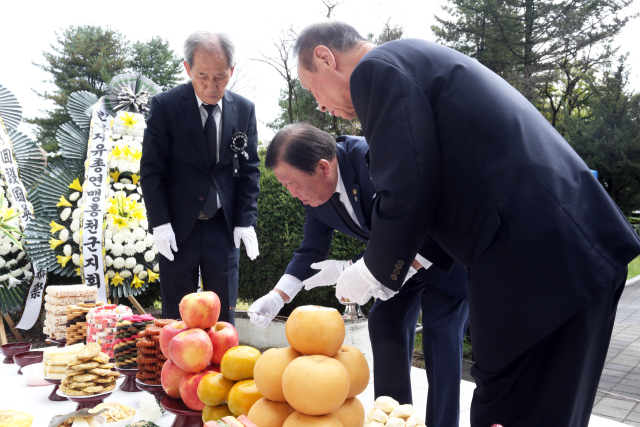 홍천군은 14일 무궁화 공원 내 현충탑에서 제8회 호국정신 함양 전몰 군경 호국 영령 추모제를 거행했다. 대한민국 전몰군경유족회 홍천군지회(회장:박시열)가 주관한 이번 행사에는 신영재 군수 등 150여명이 참석해 호국 영령을 추모했다.