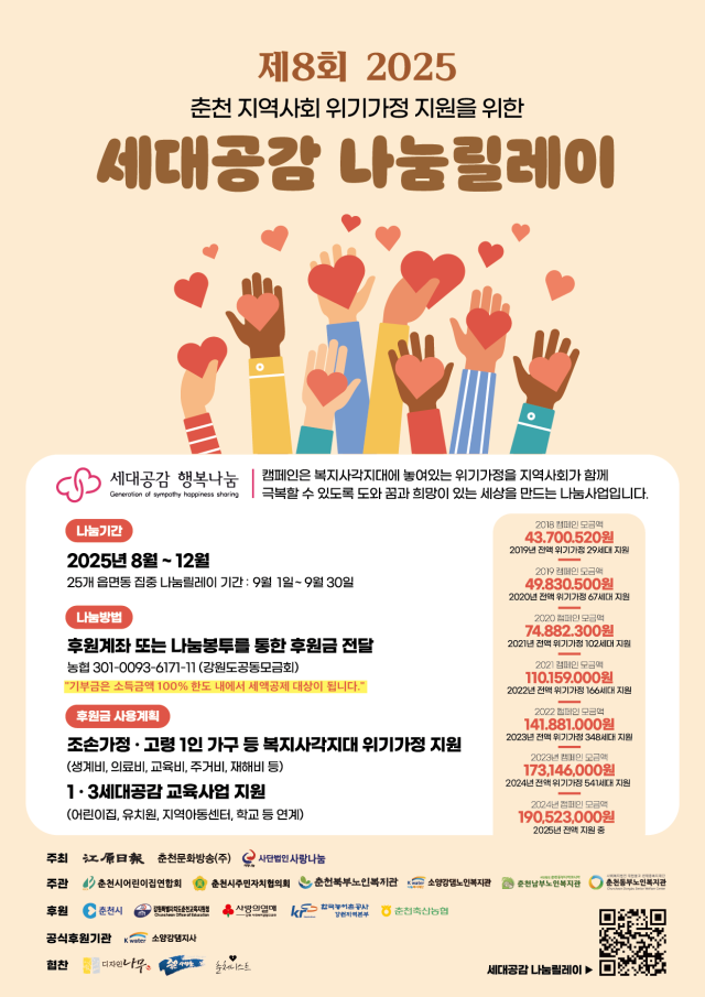 ‘2025 제8회 세대공감 나눔릴레이 캠페인’이 14일 1억3,500만원을 기록하며 역대 최고 모금액을 돌파했다.