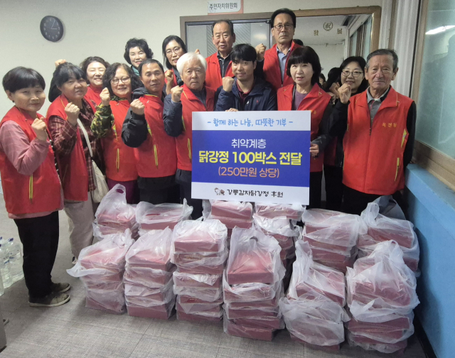 강릉감자닭강정(대표:유승우)씨는 지난 13일 취약계충 가구에 전달해 달라며 닭강정 100박스(250만 원 상당)를 옥천동지역사회보장협의체(공동위원장:전혜주, 최종락)에 기부했다.
