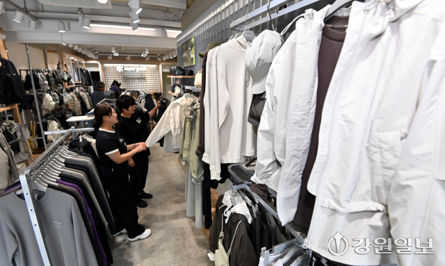 가을비와 함께 기온이 크게 떨어지면서 가을 의류를 준비하는 시민들이 늘고 있다. 14일 춘천시 조양동 스노우피크 춘천점에서 시민들이 바람막이와 외투 등 가을 옷을 고르고 있다. 박승선기자가을비와 함께 기온이 크게 떨어지면서 가을 의류를 준비하는 시민들이 늘고 있다. 14일 춘천시 조양동 스노우피크 춘천점에서 시민들이 바람막이와 외투 등 가을 옷을 고르고 있다. 박승선기자