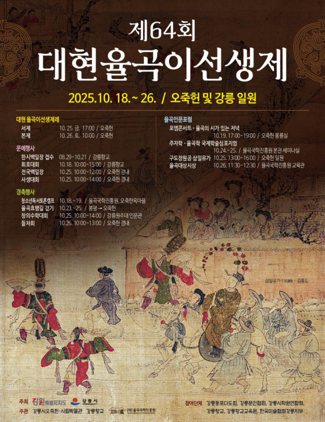 【강릉】대현 율곡 이이 선생의 유덕을 선양하고 정신을 계승, 발전시키기 위한 ‘제64회 대현율곡이선생제(이하 율곡제)’가 25~26일 봉행된다.