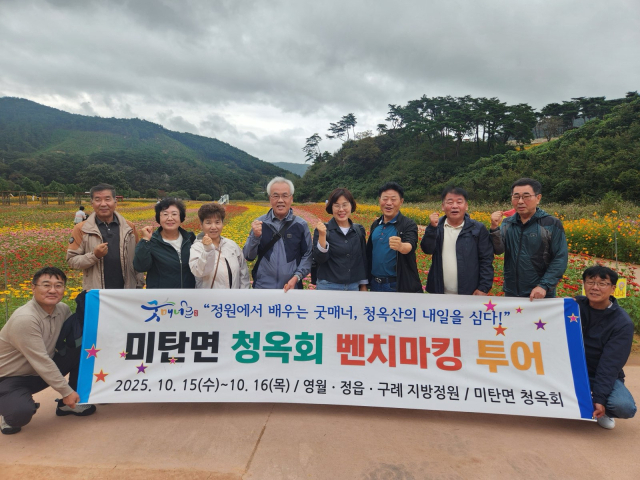 평창군 미탄면 청옥회(회장:오정희)는 15일부터 16일까지 1박 2일간 영월 연당원, 정읍 구절초 정원, 구례 지리산 정원, 영월 청령포원 등 대한민국을 대표하는 지방정원을 탐방하는 ‘굿매너 선진지 벤치마킹’을 실시한다.