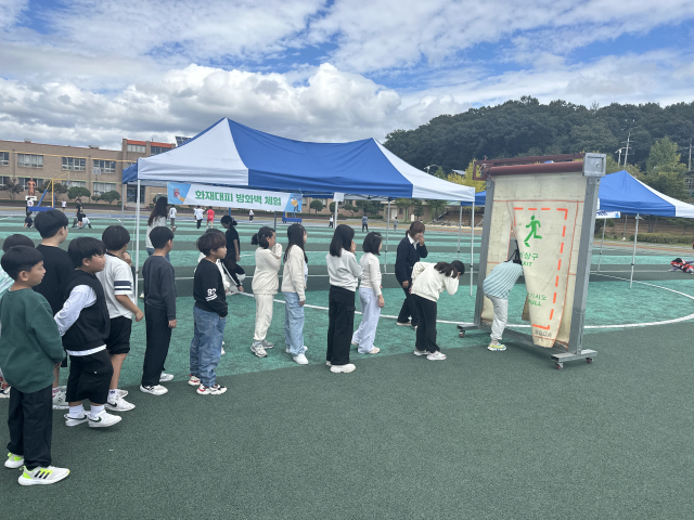 강원특별자치도교육청이 주최하고 강원일보, 강원도안전학교가 주관한 '찾아가는 안전 체험'이 15일 양구초교 운동장에서 열려 전교생이 참여했다.