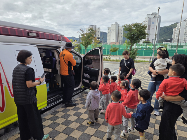 【양구】양구소방서는 15일 백두산어린이집과 열린어린이집 원생들을 대상으로 소방서 견학 및 소방안전교육을 실시했다.
