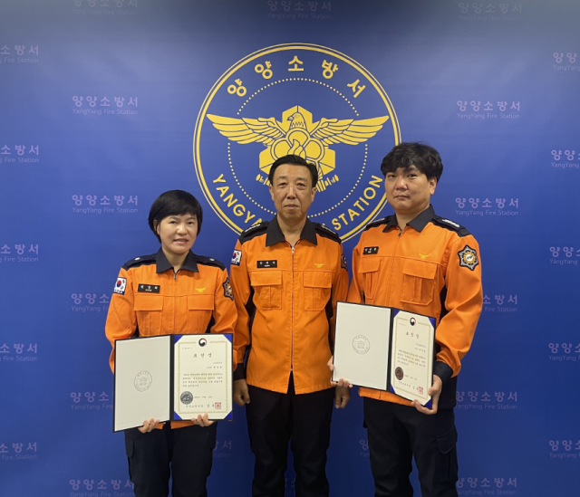 양양소방서(서장:강복식)는 16일 서장실에서 올해 3분기 적극행정 업무 유공자로 선정된 소방행정과 권경희 소방위와 강현119안전센터 남귀형 소방장에게 표창장을 수여하고 격려했다.