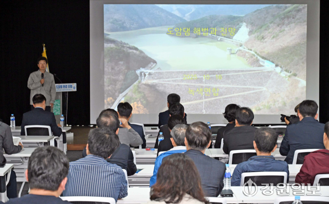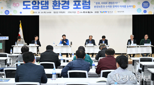 도암댐 환경포럼이 16일 정선군가족센터에서 권혁순 강원일보 상무 논설주간, 이창우 정선부군수, 전영기 정선군의장을 비롯한 군의원, 발제자, 토론자, 군민들이 참석한 가운데 열렸다.