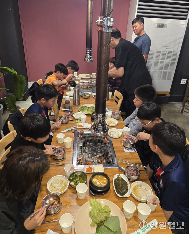 ◇전국 유소년 축구대회가 지난 17일부터 19일까지 화천에서 열린 가운데 참가 선수단이 한 음식점에서 식사를 하고 있다. 화천=장기영기자◇전국 유소년 축구대회가 지난 17일부터 19일까지 화천에서 열린 가운데 참가 선수단이 한 음식점에서 식사를 하고 있다. 화천=장기영기자◇전국 유소년 축구대회가 지난 17일부터 19일까지 화천에서 열린 가운데 참가 선수단이 한 음식점에서 식사를 하고 있다. 화천=장기영기자◇전국 유소년 축구대회가 지난 17일부터 19일까지 화천에서 열린 가운데 참가 선수단이 한 음식점에서 식사를 하고 있다. 화천=장기영기자