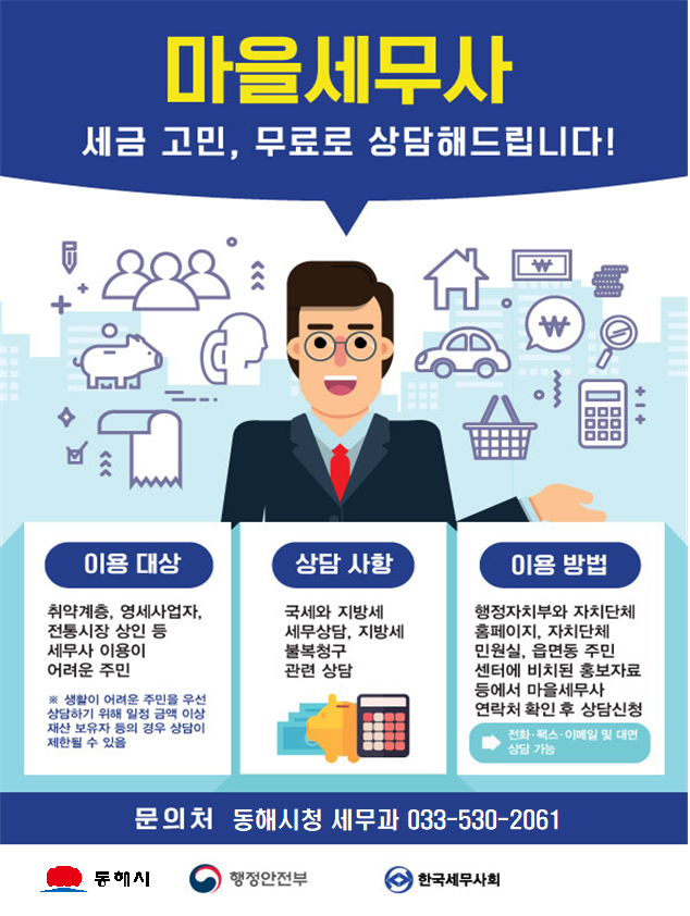 【동해】동해시가 경제적 여건 등으로 세무 상담을 받기 어려운 시민들의 세금 고민을 해소하기 위해 ‘마을세무사 제도’를 운영하고 있다.