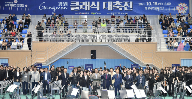 ◇강원클래식대축전이 지난 17일 횡성국민체육센터에서 김진태 강원특별자치도지사, 김명기 횡성군수, 표한상 횡성군의장 등 기관단체장과 도내 시·군을 대표하는 오케스트라, 합창단 20여곳이 참여한 가운데 성황리에 열렸다.
