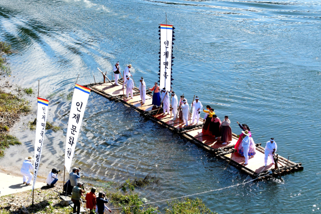 인제문화원(원장:고재옥)은 지난 17일 인제읍 합강정 앞 합수머리 일원에서 인제뗏목 시연행사를 개최했다.