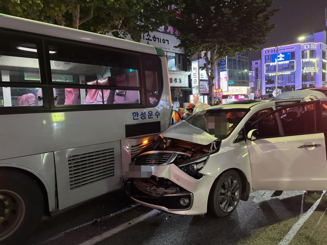 경찰과 소방당국에 따르면 이날 오후 10시 30분께 청주시 사창동 사거리 인근에서 승합차가 앞서가던 시내버스를 추돌해 승합차에 타고 있던 30대 A씨가 부상을 입고 병원으로 옮겨졌다.
