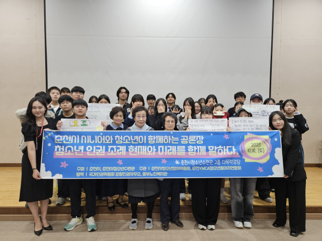 춘천시청소년수련관은 지난 18일 수련관에서 ‘2025년 춘천시 시니어와 청소년이 함께하는 공론장’을 개최했다. ‘청소년 인권 조례 현재와 미래를 함께 말하다’를 주제로 열린 행사에는 지역 청소년들을 비롯해 국가인권위원회 강원인권사무소, 동부노인복지관 관계자들이 참여했다.
