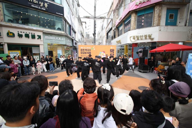 ◇지난 16~19일 개최된 2025 춘천막국수닭갈비축제 공연팀이 명동 닭갈비 골목 인근에서 공연을 펼치고 있다.