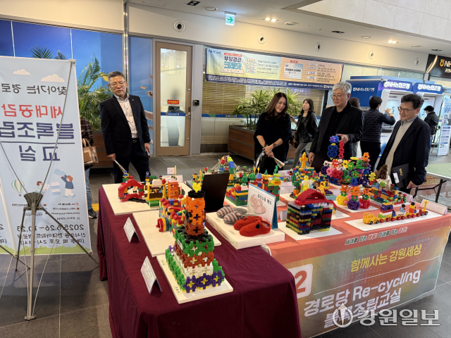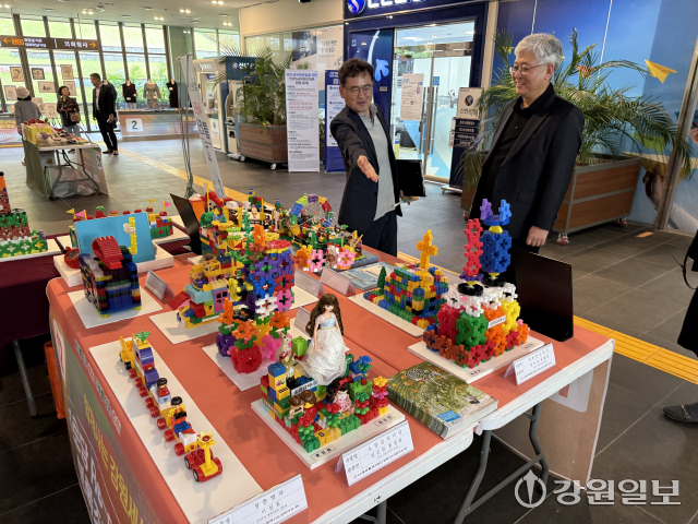 강원일보 사회복지법인 ‘함께사는 강원세상’이 주최하고 춘천시평생학습관 등 5개 기관이 협력해 진행하는 이 프로그램은 버려지는 장난감 블록을 재활용해 환경을 보호하는 동시에 어르신들의 치매 예방과 건강한 노년문화 조성을 위해 마련됐다. 이번 전시는 ‘2025 제5회 춘천시 평생학습축제’의 일환으로 진행됐다.
