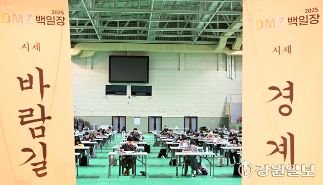 DMZ백일장이 19일 화천체육관에서 '경계'와 '바람길'을 주제로 학생·성인·군장병들이 참여한 가운데 열렸다. 신세희기자DMZ백일장이 19일 화천체육관에서 '경계'와 '바람길'을 주제로 학생·성인·군장병들이 참여한 가운데 열렸다. 신세희기자DMZ문학캠프 참여자들이 지난 18일 화천 백암산케이블카에서 접경지역의 생태와 안보에 대해 알아가고 있다. 신세희기자DMZ문학캠프 참여자들이 지난 18일 화천 백암산케이블카에서 접경지역의 생태와 안보에 대해 알아가고 있다. 신세희기자DMZ문학캠프 참여자들이 지난 18일 화천 평화의댐에서 세계 평화의 종 제작 배경에 대해서 듣고 댐 일대를 둘러보았다. 신세희기자DMZ문학캠프 참여자들이 지난 18일 화천 평화의댐에서 세계 평화의 종 제작 배경에 대해서 듣고 댐 일대를 둘러보았다. 신세희기자전상국 소설가가 지난 18일 화천커뮤니티센터에서 DMZ 문학캠프 일환으로 열린 특별 강연에 참여해 '책 읽는 즐겨움, 글 쓰는 즐거움'에 대해 말하고 있다. 신세희기자전상국 소설가가 지난 18일 화천커뮤니티센터에서 DMZ 문학캠프 일환으로 열린 특별 강연에 참여해 '책 읽는 즐겨움, 글 쓰는 즐거움'에 대해 말하고 있다. 신세희기자