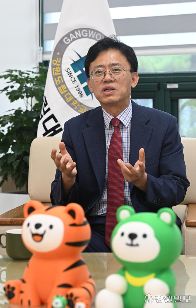 강원도립대는 실무인재 양성이라는 정체성을 유지해 전문기술 중심 고등직업교육 분야에서 실질적인 역할을 담당할 계획이다. 지역산업 맞춤형 인재양성, 평생교육 등은 도립대가 가장 잘할 수 있는 영역이며, 이러한 강점을 통합대학의 다양성과 경쟁력을 높이는 방향으로 추진하겠다. 아울러 동해안 청정해안에 위치한 위치적 이점을 살려 해양 관광 등에 특화할 수 있는 방안도 고민하도록 하겠다.”