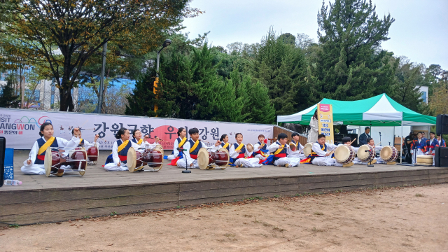사한국국악협회 강원특별 자치도지회(회장:한춘녀)는 18일 춘천 공지천 의암 공원에서 2025년 국악활성화지원사업의 일환으로 영서북부권역 국악공연을 펼쳤다. 이날 1부 공연은 청소년 국악 공연, 2부는 광양 버꾸놀이 초청 공연, 3부는 강원지회 국악 예술단과 홍천국악협회 협연으로 펼쳐졌다.