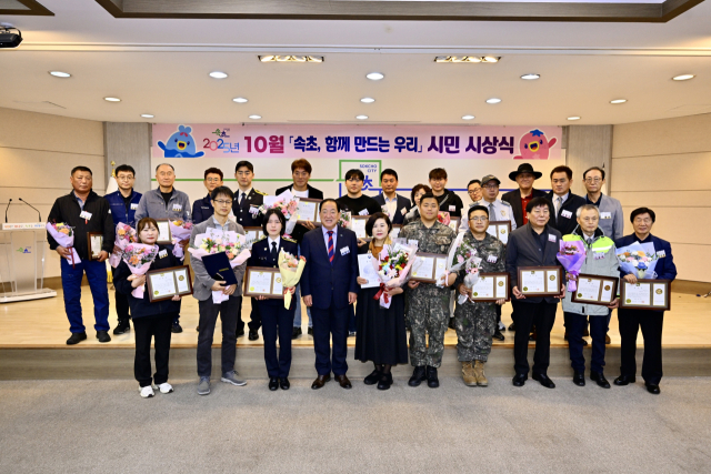 이병선 속초시장은 20일 시청 대회의실에서 열린 시민 시상식 ‘속초, 함께 만드는 우리’에 참석해 사회복지 유공 보건복지부장관 표창 등 총 5개 분야 27명의 시민에게 표창장을 전수하고 축하와 감사의 인사를 전했다.