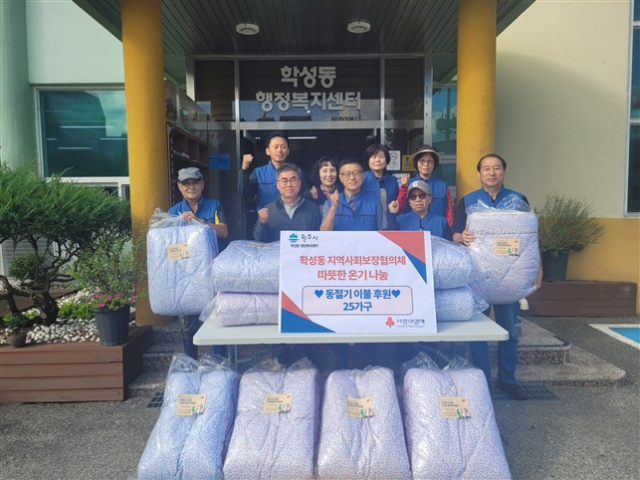 원주시 학성동지역사회보장협의체(위원장:김기환)는 지난 17일 학성동행정복지센터에서 지역 내 취약계층 25가구에 따뜻한 겨울 이불을 전달했다.