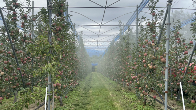 기후변화로 강원도가 사과 주 재배지로 떠오르면서 일손은 줄이고 수확량은 늘리는 ‘다축 평면수형 기반 스마트팜’이 강원형 재배모델로 주목받고 있다.