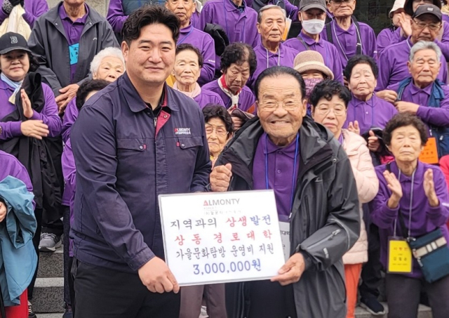 농업회사법인 솜씨가와 (주)알몬티대한중석은 지난 21일 상동경로대학을 방문해 문화탐방 후원금 전달하며 이웃사랑을 실천했다.