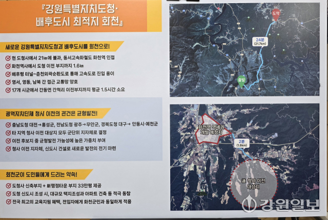 둘째, 만일 도청 청사를 화천으로 이전하는 게 불가하다면 배후도시 건설만이라도 균형발전의 당위성과 최적의 입지를 갖춘 화천군 간동면 간척리 지역을 적극 검토해 줄 것을 요청했다.