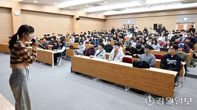 '프로 N잡러'로 알려진 강릉 출신 이다슬 KBS 성우가 강원대 학생들에게 꿈을 위해 도전하라며 격려와 조언을 전했다.