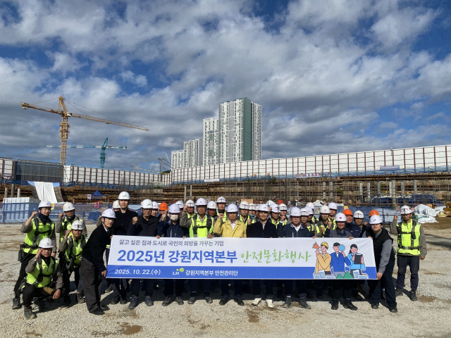 LH 강원지역본부(본부장:오승찬)는 22일 원주무실A-1BL 아파트 건설공사 현장에서 ‘건설현장 안전문화행사’를 열고 현장 안전점검을 시행했다. 이날 행사는 건설현장 대표, 감리자, 근로자 대표 등 건설현장 관계자가 참여한 가운데 진행됐다.