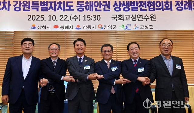 제12차 강원자치도 동해안권 상생발전협의회 정례회가 22일 동해안발전전략 심포지엄이 열린 국회 고성연수원에서 함명준 고성군수(협의회장), 김홍규 강릉시장, 이병선 속초시장, 박상수 삼척시장, 탁동수 양양군수권한대행, 김정윤 동해 부시장 등이 참석한 가운데 함께 개최됐다.