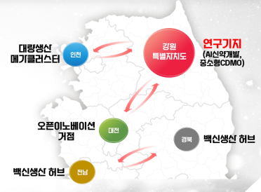 춘천은 신약개발과 연구개발의 거점으로, 홍천은 바이오의약품 생산과 제조 중심 기능을 담당한다. 여기에 원주(디지털 헬스), 강릉(천연물바이오), 평창(그린바이오) 등 강원 전역의 특화 산업을 연계해 시너지 효과를 극대화한다. 도는 이러한 연계를 통해 글로벌 공급망 안정화와 중소형 CDMO(위탁생산) 육성, 국가 첨단바이오벨트 핵심 축으로의 도약을 노리고 있다. 강원은 이제 국내 바이오산업을 넘어, 세계 무대에서 경쟁하는 글로벌 바이오 클러스터로 성장하려 하고 있다.