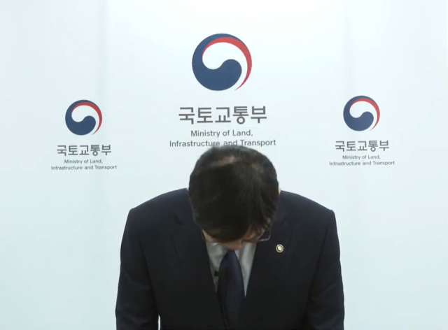 이 차관의 이날 사과문 발표는 국토부 유튜브 계정을 통해 생중계됐으나 질의응답 등을 받지 않은 채 2분가량의 입장 발표로 끝났다.