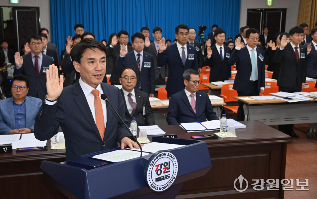 이날 김진태 강원특별자치도지사를 비롯한 도청 실국장, 산하기관장이 모두 출석했다.