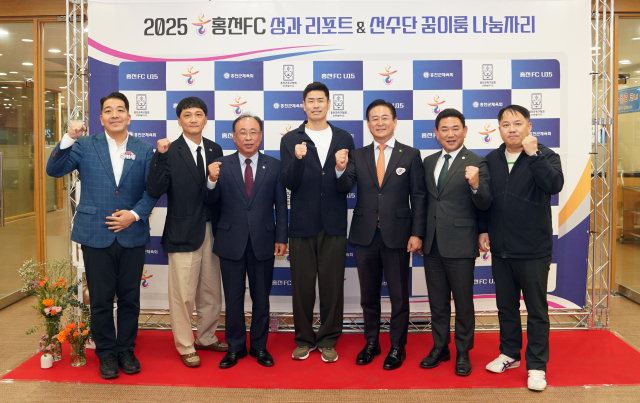 홍천FC 후원회는 23일 K컨벤션웨딩홀에서 신영재 군수, 이영욱 도의원, 박영록 군의장, 용준식·황경화 군의원, 신은섭 홍천군체육회장, 전명준 홍천문화재단 이사장, 전우철 후원회장 등이 참석한 가운데 ‘2025 홍천FC 성과 리포트 및 선수단 꿈이움 나눔자리’를 개최했다.