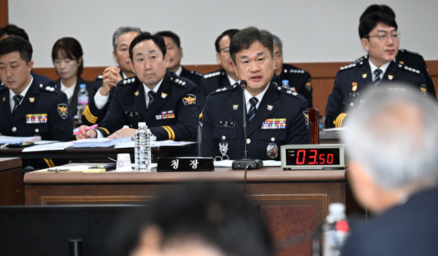 ◇최현석 강원경찰청장이 24일 국회 행정안전위원회 국정감사에서 의원들의 질의에 답변하고 있다. 박승선기자.