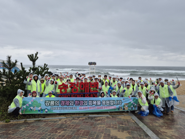 강원특별자치도경제진흥원(원장:서동면)은 개원 25주년 기념일과 연계해 지난 24일 강릉에서 강릉중앙시장 전통시장 장보기와 ESG 플로깅 캠페인을 했다.