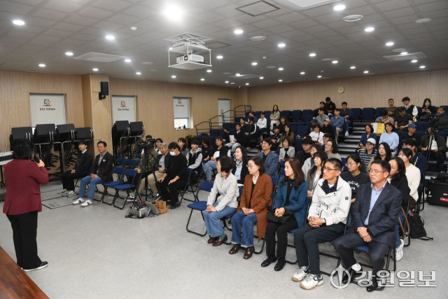 창간 80주년을 맞은 강원일보사가 대입 정보 격차 해소를 위해 홍천군, EBS와 공동으로 개최한 ‘입시 전략 설명회 인 홍천’이 25일 홍천군평생학습관에서 열렸다. 홍천교육지원청, 강원특별자치도가 후원한 이번 설명회에는 올해 고교 학점제 전면 시행에 맞춰 대입을 준비해야 하는 중학생과 고1학년생, 내년 수능을 앞둔 고2학년생과 학부모 등 100여명이 참석했다.