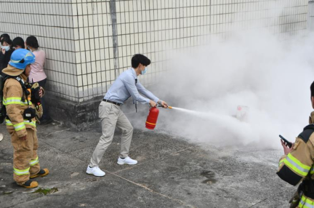 훈련은 간호사가 휴게실 내 화재를 최초로 발견한 상황을 가정해 진행, 초기 소화기 진압과 발신기 작동, 비상방송 등으로 진행했다.
