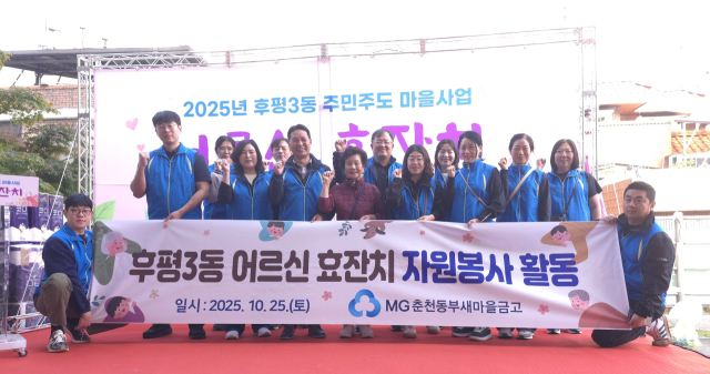 춘천동부새마을금고(이사장:박광선)는 지난 25일 후평3동 행정복지센터에서 개최된 ‘후평3동 어르신 효잔치’에 참여해 자원봉사활동을 펼쳤다. 이날 식사배식 및 환경정리 활동을 실시하고 어르신들을 위해 경품을 제공했다.