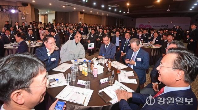 강원일보 창간 80주년 기념식에서는 보기 드문 장면이 연출됐다.