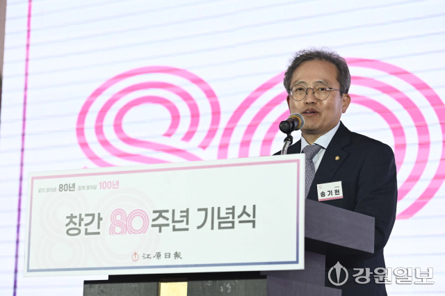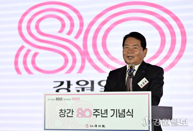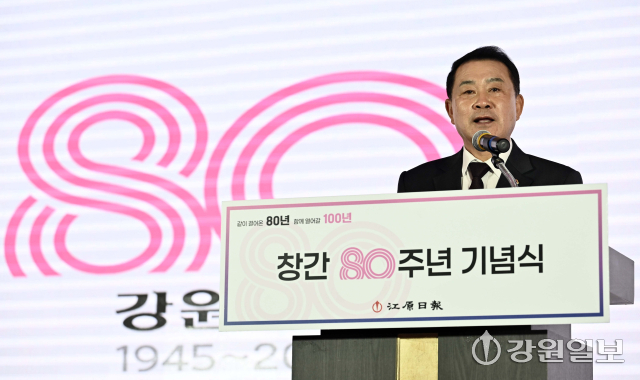 강원일보는 지난 24일 춘천 스카이컨벤션웨딩홀에서 창간 80주년 기념식을 개최했다. 이 자리에서 김진태 지사와 김시성 도의장, 신경호 교육감, 지역구 국회의원 등 주요 내빈들은 도민 목소리를 대변하며 지역을 위해 정론직필을 펼쳐온 본보의 노력을 강조하고 새로운 발전을 기약했다.