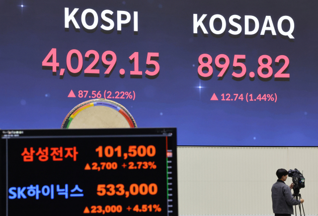 코스피, 장중 사상 첫 4,000선 돌파…삼성전자 10만900원에 거래