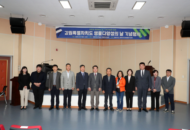 강원특별자치도는 27일 강원대 산림환경교육센터(학술림)에서 생태계 보전의 중요성을 알리고 생물다양성 증진을 위한 ‘강원특별자치도 생물다양성의 날 기념행사’를 개최했다. 이번 행사는 생물다양성 보전에 기여한 유공자에 대한 도지사 표창 수여를 비롯해 강원특별자치도 야생동물구조관리센터, 한국수달연구센터, 국립공원공단 등 관련 기관들의 생물다양성 보전 활동 사례 발표와 구조된 야생동물 및 민물고기 방류 등으로 진행됐다.