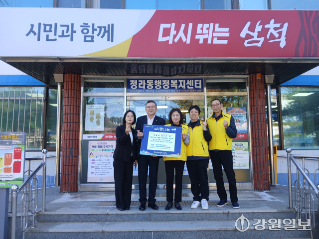 삼척 늘푸른새마을금고(이사장:우기식)는 28일 정라동 지역사회보장협의체에 독거가정 집수리(250만원) 및 정라동 어르신 장수사진 촬영(100만원)을 지원했다.
