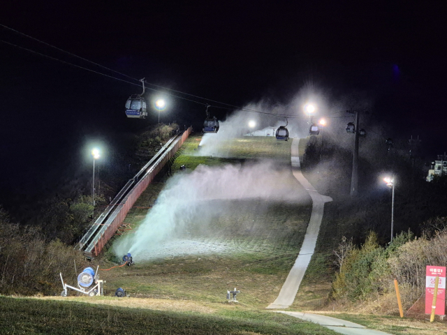 이날 새벽부터 스키장 슬로프 곳곳에서는 제설기가 일제히 가동되며 초겨울의 시작을 알렸다