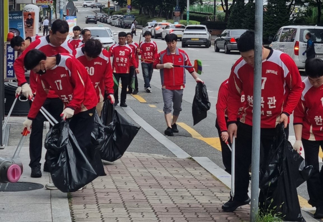 한국관 직원 20여명은 이달 한달간 원주 단계동 등 원주 시내를 다니며 길거리 청소를 했다. 한국관이 청소 봉사를 시작한 것은 2000년부터다. 심호섭 대표와 직원들은 지역 사회에 조금이나마 보탬이 되고자 몸으로 하는 봉사를 펼쳐보자고 뜻을 모았고, 퇴근 후 2~3시간씩 길거리 청소를 이어오고 있다.