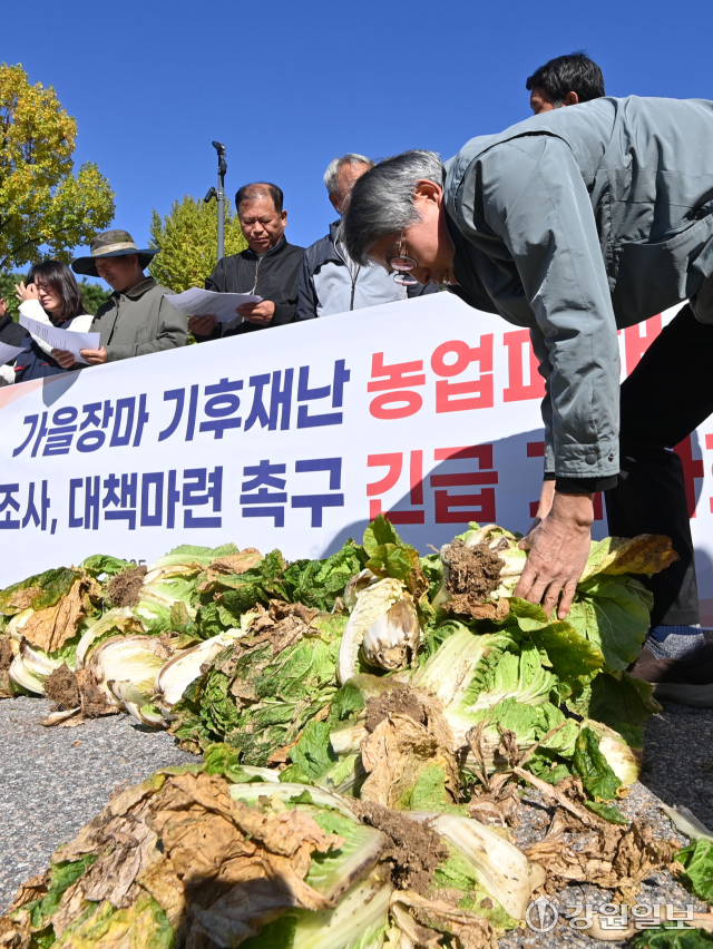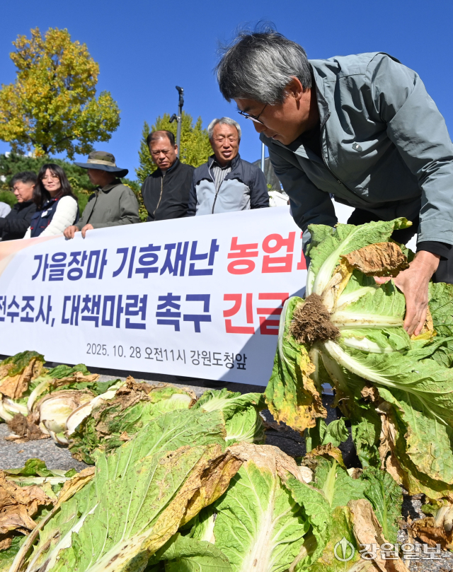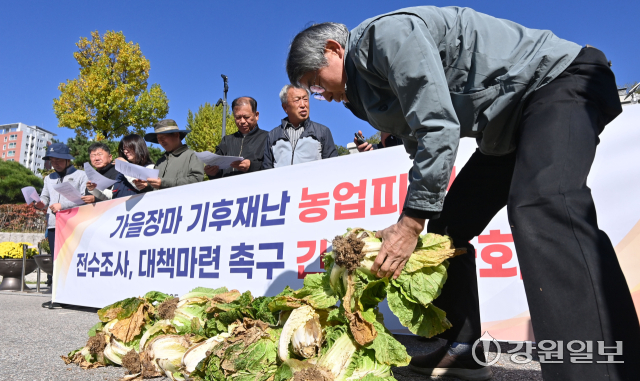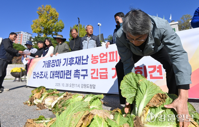 전국농민회총연맹 강원도연맹은 28일 강원자치도청 앞에서 기자회견을 열고 가을장마 등 기후재난으로 인한 농업피해의 전수조사와 대책마련을 촉구했다.