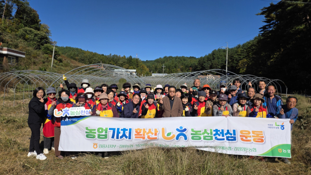 강릉농협(조합장:최장길)은 28일 농협중앙회 강릉시지부(지부장:박종범)와 강릉농협 주부대학총동창회(회장:안선희)와 함께 강릉시 성산면 단호박 작목반(반장:조춘형)을 방문해 농심천심운동의 일환으로 농촌일손돕기와 농심천심운동 캠페인을 실시했다..